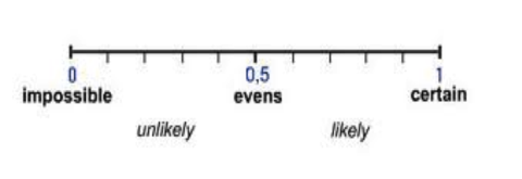 Theoretical Probability = Probability | Probability of an event happening found by dividing the number of desirable outcomes by the total number of possible outcomes. E.g. Probability of rolling a 3 on a fair die is 1/6 as there is one favourable outcome and six possible outcomes |