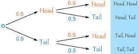 Used to write down all possible combinations for two or more trials. Example below is for flipping a coin two times