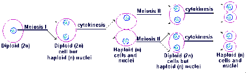 | What happens and what is produced in: Meiosis I: _____ Meiosis II: _______ What are the final products? | Meiosis I: tetrads separate into sister chromatids (resulting cells are haploid) Meiosis II: separates sister chromatids so that each cell gets one chromosome (resulting in unpaired sister chromatids) Products: 4 haploid gametes (sex cells) that are not identical to each other or the parent cell. |