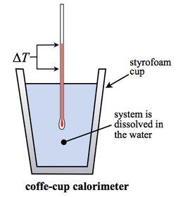 Simple calorimeter | Used to measure energy changes in a solution polystyrene or styrofoam is a good thermal insulator so helps minimise energy transfer through sides of the container during reactions, a lid on the calorimeter reduces energy transfer to the surroundings even further. The thermometer is used to measure the change in temperature taking place in the reaction, chemicals are mixed in the cup. |