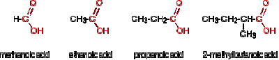 Carboxylic acids | Ethanoic acid is the main acid in vinegar all carboxylic acids contain the -COOH functional group. We show th structural formula of each of the carboxylic acis as HCOOH, CH3COOH and CH3CH2COOH (C2H5COOH). |