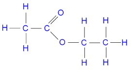Esters | These are closely related to carboxylic acids if we replace the H atom in the -COOH group by a hydrocarbon group we get an ester. On the other side is an ester called ethyl ethanoate. An ester's structural formula always has the -COO- functional group in it, teh strucutral formula of ethyl ethanoate is CH3COOCH2CH3 (or CH3COOC2H5) |