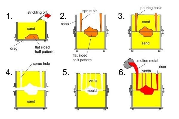 | Folding bars held in a vice Thin metal may be bent whilst cold, while thicker metal may need heating or annealing. Larger pieces of metal may also need to be heated first | |