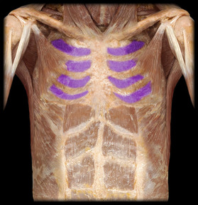 | Latissimus dorsi | Origin: Ilium (iliac crest) lower 4 ribs Insertion: Humerus Action: adduction of arm, ext of arm, medial rotation of arm. |