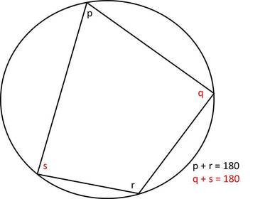 CYCLIC QUADRILATERAL THEOREM: The opposite angles of a cyclic quadrilateral are supplementary (they add up to 180°) |