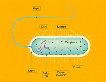 | Hvad er cytoplasma? | Cellevæske, der indeholder bakteriens DNA, plasmid og ribosomer. |