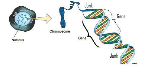 | What does A represent? | "Junk": portion of DNA strand that is not a gene . |