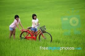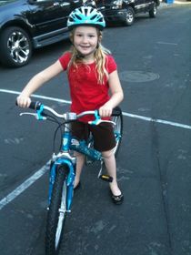 They are riding a bike all together. Lucy,Esperanza,Rachel. |