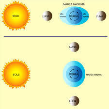 | La luna e in parte il sole esercitano sulla superficie della Terra un'attrazione gravitazionale che genera le maree. | |
