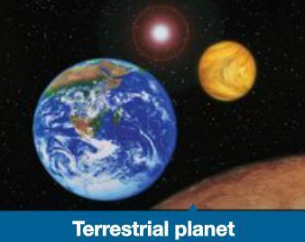 | Terrestrial planet | literally 'Earth-like' planet, planet made primarily of rock and solid material, e.g. Mercury, Venus, Earth and Mars |