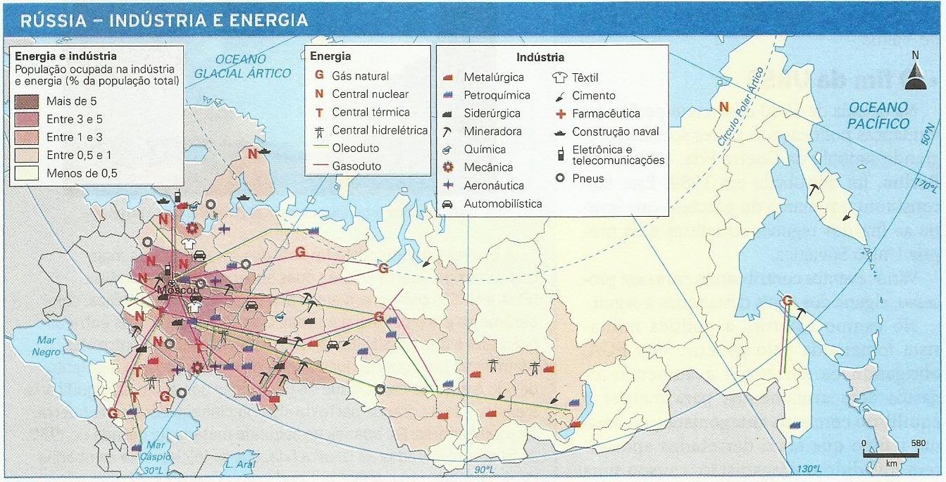 | Recursos minerais e Indústrias | As indústrias russas, por estarem próximas às fontes de matérias-primas, não estão concentradas. |