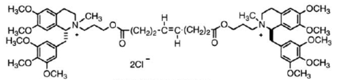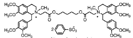 | atracurium besylate - non depolarizing NMJ blocker - cc: benzylisoquinoline - they are competitive receptor antagonist - all are ionized - Exception: CNS side effects - therapeutic use: muscle relaxation - reversal of effects of non depolarizing: AChI | |