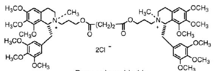 | doxacurium chloride non depolarizing NMJ blocker - cc: benzylisoquinoline - they are competitive receptor antagonist - all are ionized - lack CNS side effect - therapeutic use: muscle relaxation - reversal of effects of non depolarizing: AChI | |