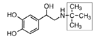 | albuterol 3' hydroxymethyl,4'hydroxy substitution non catechol => orally active receptor activity: beta 2 > beta 1 | |