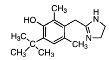 | oxymetazoline - alpha 1 adrenergic agonists - cc: imidazoline derivatives contain a carbon between C2 of imidazoline and a phenyl ring - contain phenylethanolamine moiety ortho methyl: agonistic activity at alpha 1 and alpha 2 receptors - bulky group at para position: increase alpha 1 and decrease alpha 2 activity - mainly used as nasal decongestant | |