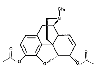 | Heroin -3,6-diacetyl derivative of morphine - weak affinity to mu receptor -more lipophilic: penetrates BBB - hydrolyzed in the brain to give: 3-acetylmorphine (3-MAM) 6-acetylmorphine (6-MAM) - 6-MAM has potent mu agonist | |
