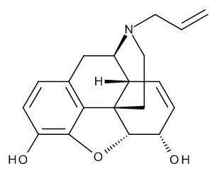 | nalorphine - N-allyl substitution for N-methyl 7,8-double bond reduction 6-keto reduction structure is wrong (no double bond + 14 beta OH) | |