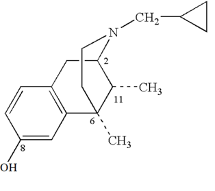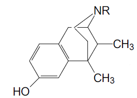 | cyclazocine - R: N-cyclopropyl methyl - mixed agonist/ antagonist kappa agonist mu antagonist | |