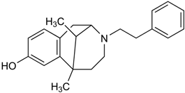 | pentazocine -R: N-methyl of 2-methyl-2-butene - mixed agonist/antagonist kappa agonistic activity: analgesic mu antagonistic activity -only one marketed in US | |