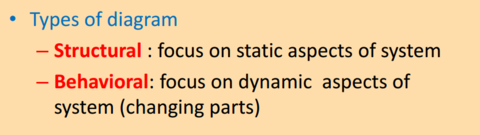 | Bayangkan, Spesifik, Membina dan Dokumenkan Sistem | Struktur : Fokus pada Statik aspek dalam sistem Tingkah Laku : Fokus pada aspek Dinakim dalam sistem ( perubahan) |
