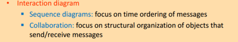 | Menunjukkan fungsi yang disediakan oleh sistem dari segi pelakon, matlamat mereka digambarkan sebagai kes-kes penggunaan, dan setiap kepenggantungan di antara kes-kes kegunaan | Sequence diagram: fokus pada masa pesanan mesej Kerjasama: tumpuan kepada organisasi struktur objek yang menghantar / menerima mesej |