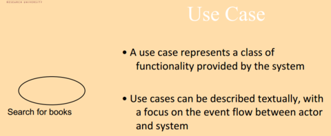 | • Kes penggunaan mewakili kelas fungsi yang disediakan oleh sistem • Penggunaan kes-kes dapat digambarkan secara tekstual, dengan memberi tumpuan kepada aliran acara antara pelakon dan sistem |