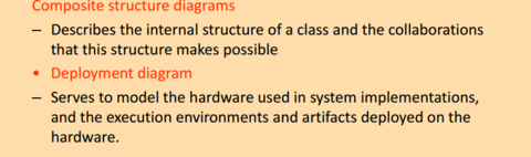 | - Menjelaskan struktur dalaman kelas dan kerjasama bahawa struktur ini membuat kemungkinan -- Berfungsi untuk model perkakasan yang digunakan dalam pelaksanaan sistem, dan persekitaran pelaksanaan dan artifak ditempatkan di perkakasan. | - Menunjukkan gambaran yang lengkap atau sebahagian daripada struktur yang dimodelkan sistem pada masa tertentu -Menggambarkan bagaimana sistem tersebut dibagi menjadi kumpulan logikal dengan menunjukkan ketergantungan antara pengelompokan ini. |