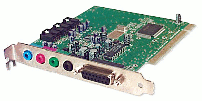 A Soundcard. The soundcard produces sound that can be heard by the user through speakers or headphones. |