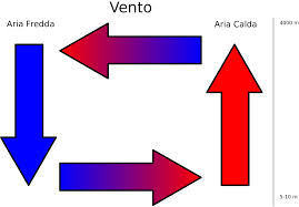 | Quando la terra si riscalda l'aria soprastante si carica di calore, diventa più leggera e sale, "liberando" il posto per l'aria più fresca presente sul mare: si crea così un vento che dal mare soffia verso la terraferma. Di notte e d'inverno accade il contrario. | |