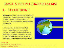 | La latitudine, cioè la distanza di un luogo della terra rispetto all'Equatore, può influire sul clima di quella regione. | |