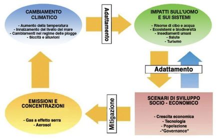La cartina mostra in sintesi gli effetti prodotti dalle emissioni e concentrazioni di gas nell'atmosfera dovuti alle attività dell'uomo. |