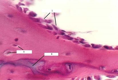 A-Osteocytes (B-Calcified cartilage 1-Osteoblasts) |