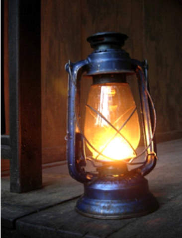 Lámpara formada por dos recipientes de metal superpuestos, con el aceite y la mecha en el superior y en el inferior una varilla con un garfio para colgarlo.