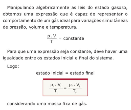 | Qual é a equação geral dos gases? | Insira o texto aqui... |