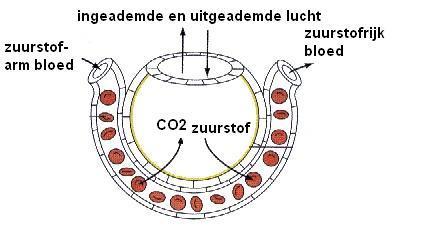 | Wat is diffusie? | De uitwisseling van gassen. In dit geval het uitwisselen van zuurstof en CO2. |