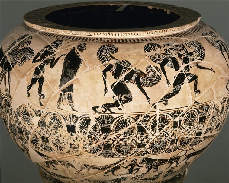 Wedding of Peleus and Thetis, Sophilos, Dinos and stand, 580-570 BC, 6th Century Black Figure |