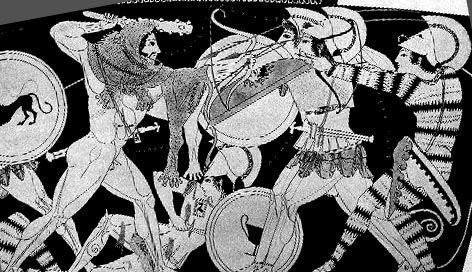 Achilles and Hector, Berlin Painter, Volute Krater, 490-460 BC, 5th Century Red Figure |