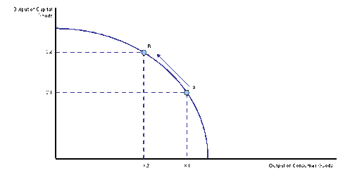 | Too little spending and too much saving means the economy produces where in the PPF ? | Inside the production possibility frontier, under-full employment equilibrium |