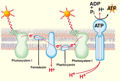 Where does the energy for photo phosphorylation come from? | Chemiosmosis - \(H^+\) ions moving through ATPsynthase proton pore having been pumped in using energy from ETC. |