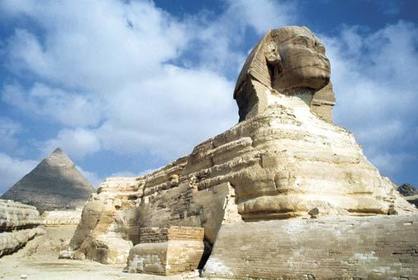 | Great Sphinx and Pryramid of Khafre, c.2550-2494 BCE, Giza, Egyptian: Old Kingdom | |