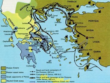 | The 2nd Greco - Persian Wars 480-470BC The Causes | You are likely to believe that Xerxes wanted revenge for his father's defeat by the Greeks. However, Herodotus suggests that he was persuaded to attack Greece!! Undoubtedly, however, the assets Greece had and the continued expansion of both Empires would also be causes of the war. |