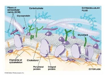 | What is the role of proteins in cell membranes? | Control what enters and leaves the cell. Some form channel proteins and others form carrier proteins. Proteins also act as receptors for molecules in cell signalling- when a molecule binds to the protein a chemical reaction is triggered inside the cell. |