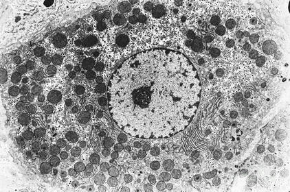 | What type of microscope produced this image? | TEM image of human liver |