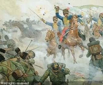 | What were each side armed with? What were the Light Brigade against their enemies? | The cavalry were only armed with swords, whereas the Russian soldiers had guns. The Light Brigade were virtually defenseless against their enemies, and many of them were killed. |