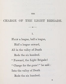 | What does the poem describe? | The poem describes a disastrous battle between the British cavalry (soldiers on horseback) and Russian forces during the Crimean War (1853-1856). |