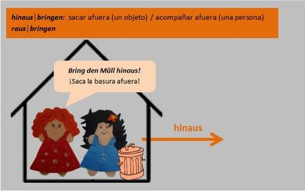 heraus/ hinaus raus - coloquial para os dois casos | fora ("her" - o falante está fora do recinto) ("hin" - o falante está dentro) |