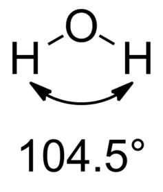 | Explain the shapes of, and bond angles in, molecules and ions with up to 6 electron pairs | A molecule with 2 bonding pairs and 2 lone pairs will have a bond angle of 104.5 degrees (5 degree less than tetrahedral) giving it a nonlinear shape or angular line shape |