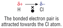 | Explain how a permanent dipole may arise | A non-polar bond will form when the two atoms involved in the covalent bond are of very similar electronegativities resulting in an even distribution of electrons between them - neither atom attracts the electron pair more strongly than the other. e.g H-H A polar bond will form when the two atoms involved in the covalent bond are of different electronegativities resulting in an uneven distribution of electrons as the more electronegative atom will attract the bonding pair more strongly. e.g H-Cl (Cl being the more electronegative) This uneven distribution creates a small charge difference across the bond, a permanent dipole. Greater electronegativity difference = greater permanent dipole. |