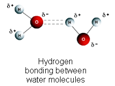 | Describe and explain the anomalous properties of H2O resulting from hydrogen bonding | Ice is less dense than water because the hydrogen bonds in the open lattice of ice holds the water molecules apart from each other. However, when it melts the rigid hydrogen bonds collapse allowing the water molecules to move closer together. Water has high melting and boiling points because of the stronger hydrogen bonds that add to the weaker Van der Waals forces. The hydrogen bonds must be overcome in order to separate the molecules. Hydrogen bonds also give water a higher surface tension and viscosity. |
