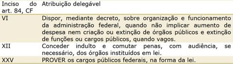 | Quais as atribuições delegáveis do presidente da república? (os ministros de estado, ao procurador-geral da república e ao advogado-geral da união) |
